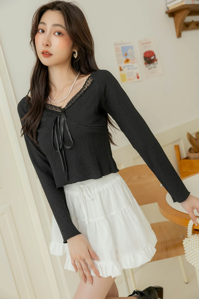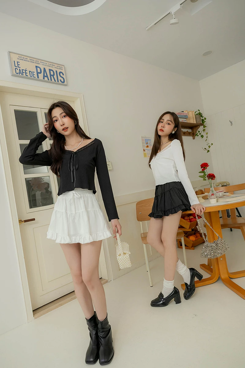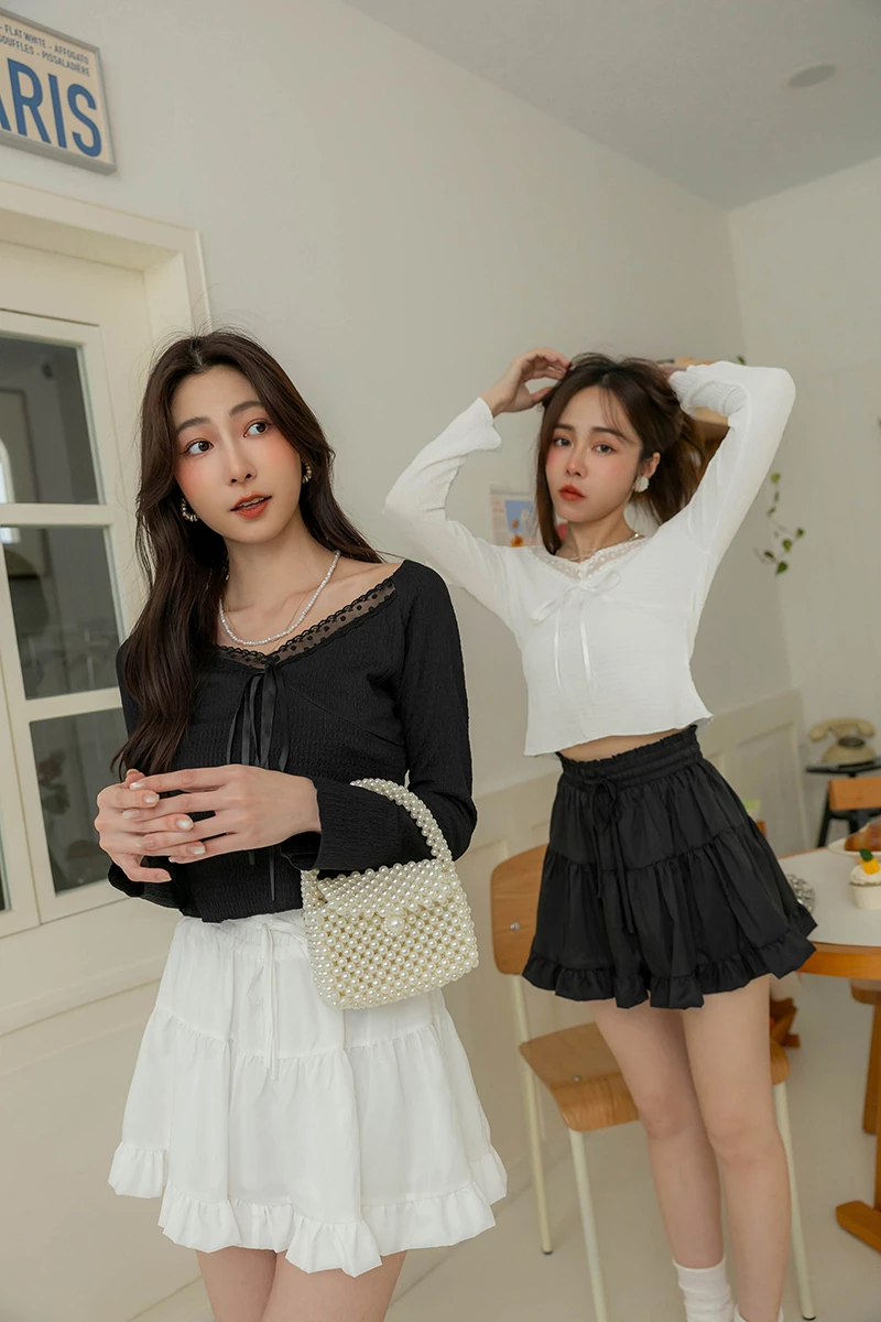 冰感系列-削肩層次荷葉上衣