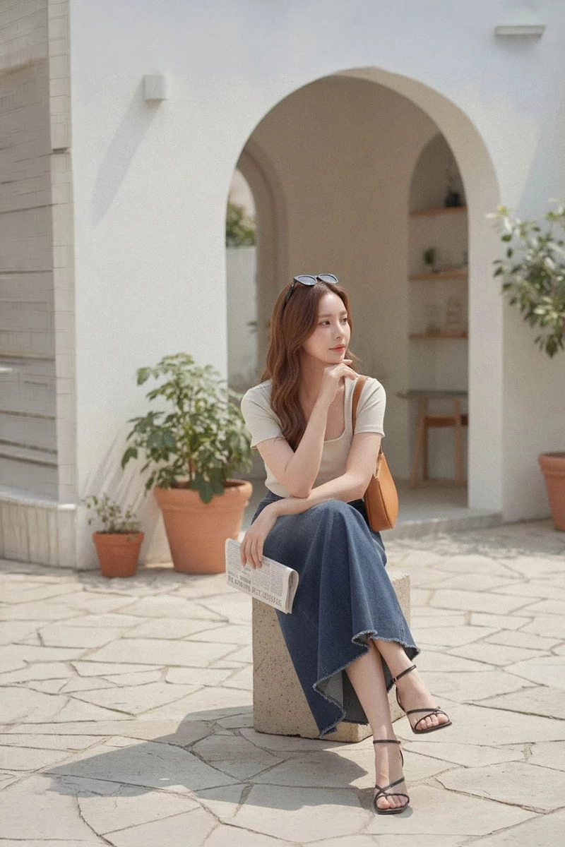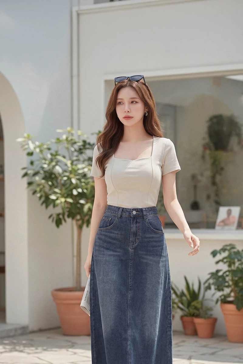 -5KG無印風後開岔水洗長裙