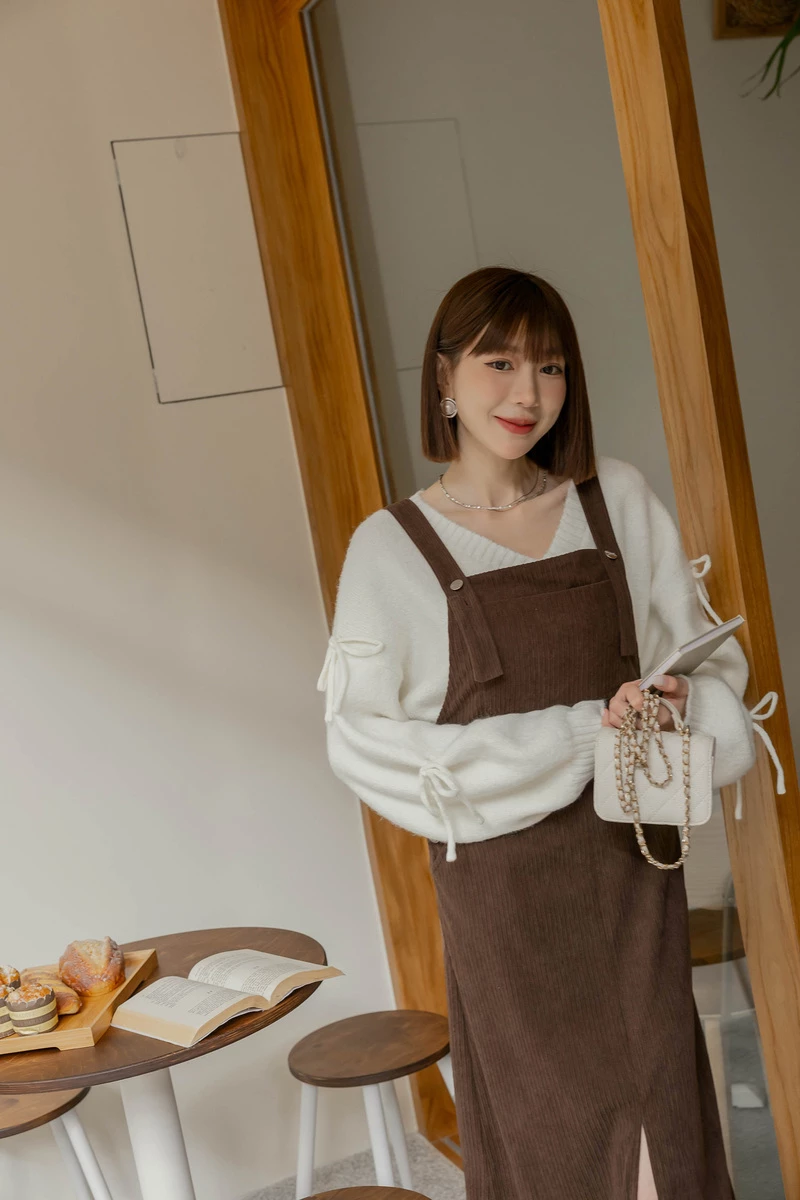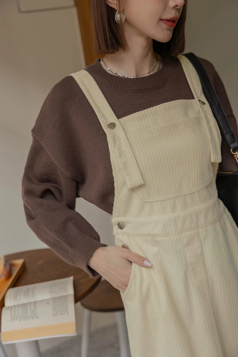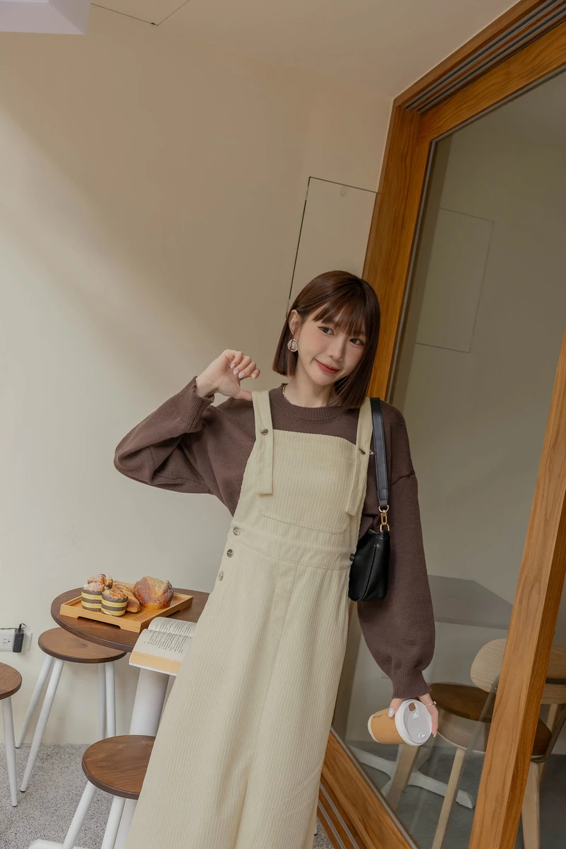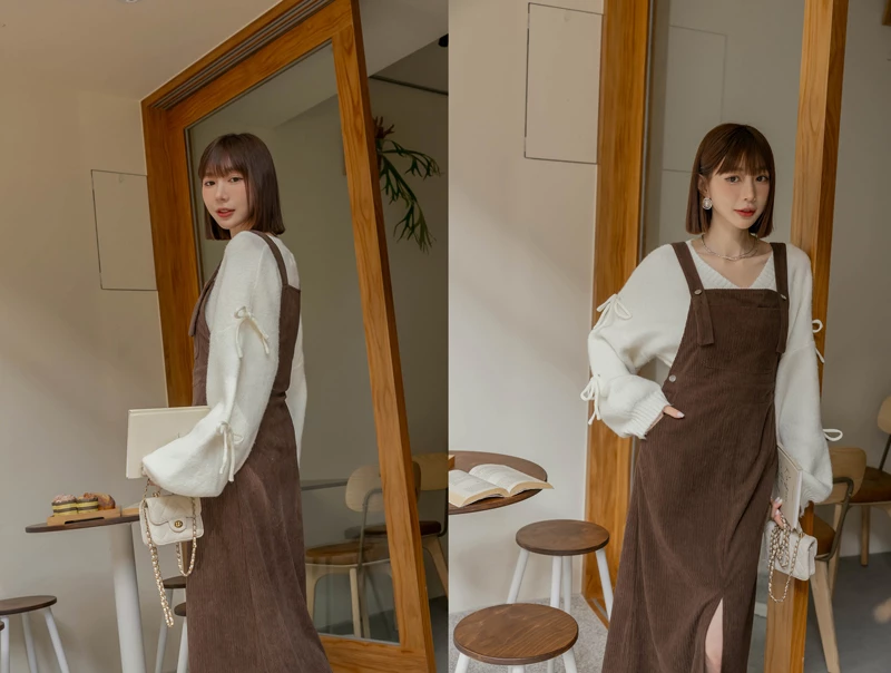 燈心絨坑條吊帶長洋裝