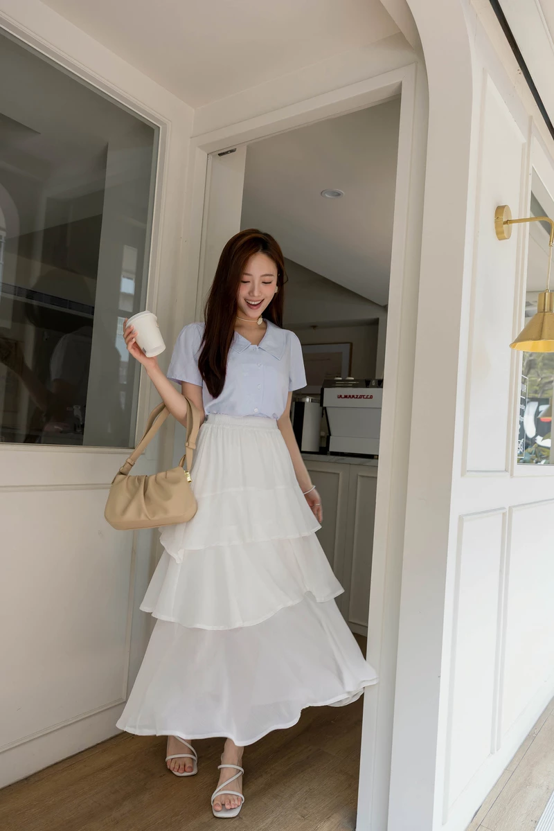 兩件式-肩綁帶層次蛋糕洋裝上衣套組