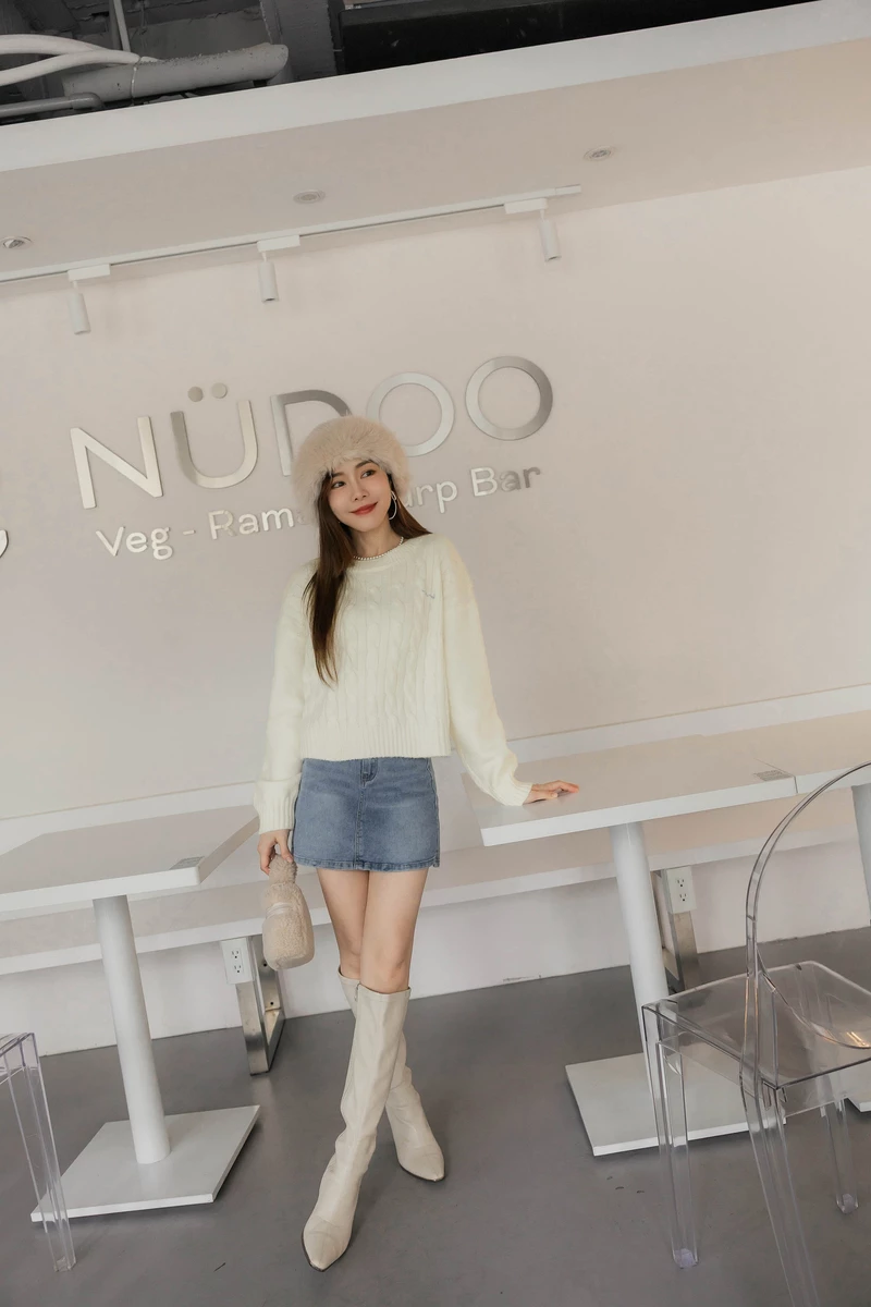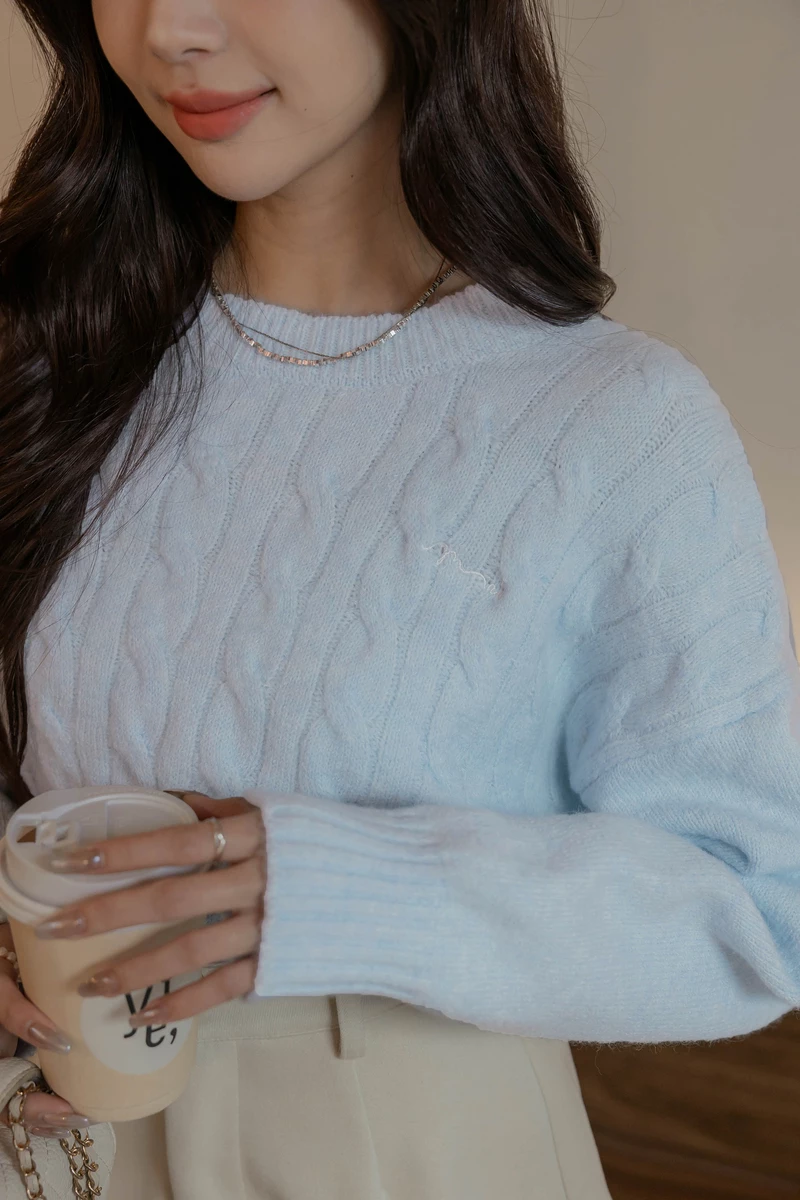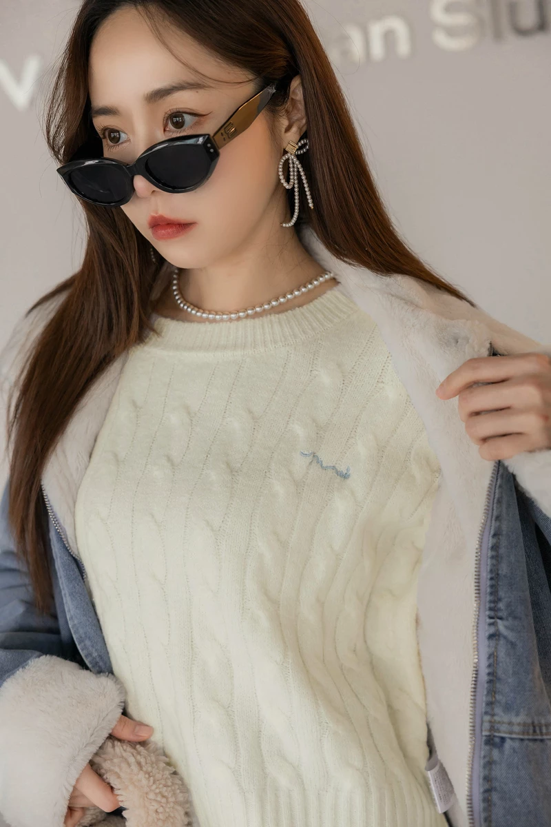品牌刺繡混色麻花針織上衣