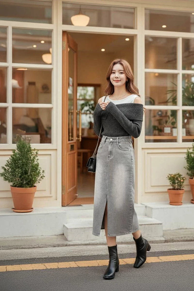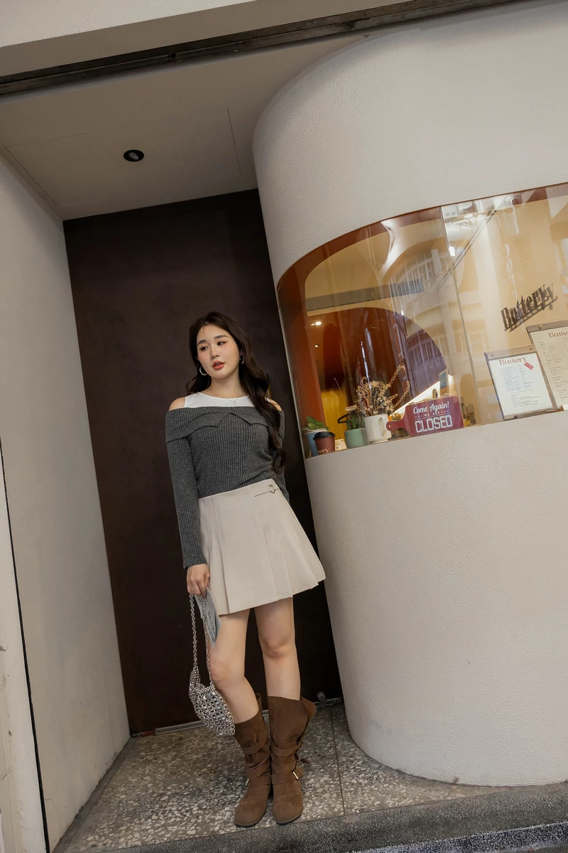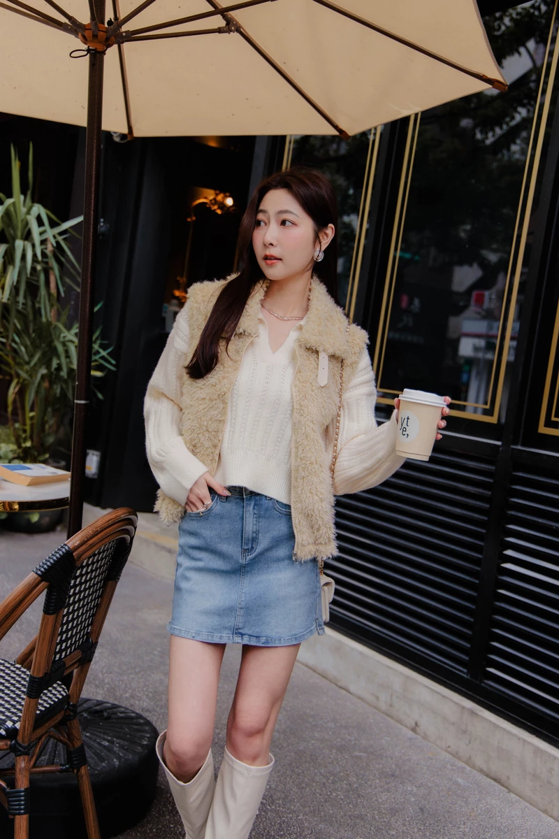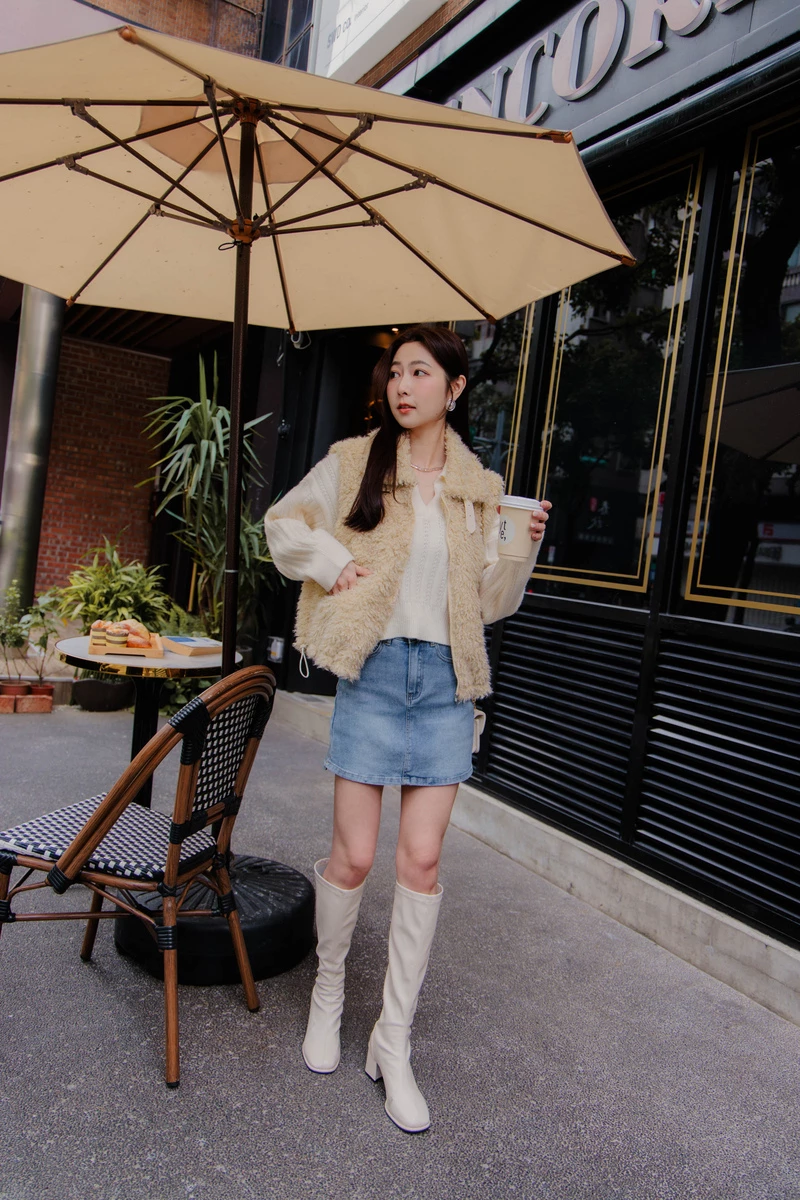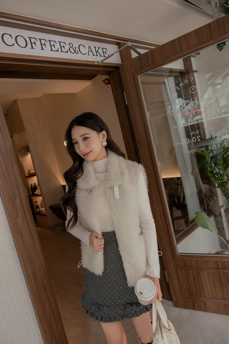 兩件式-羽毛背心搭襯衫蛋糕短洋裝