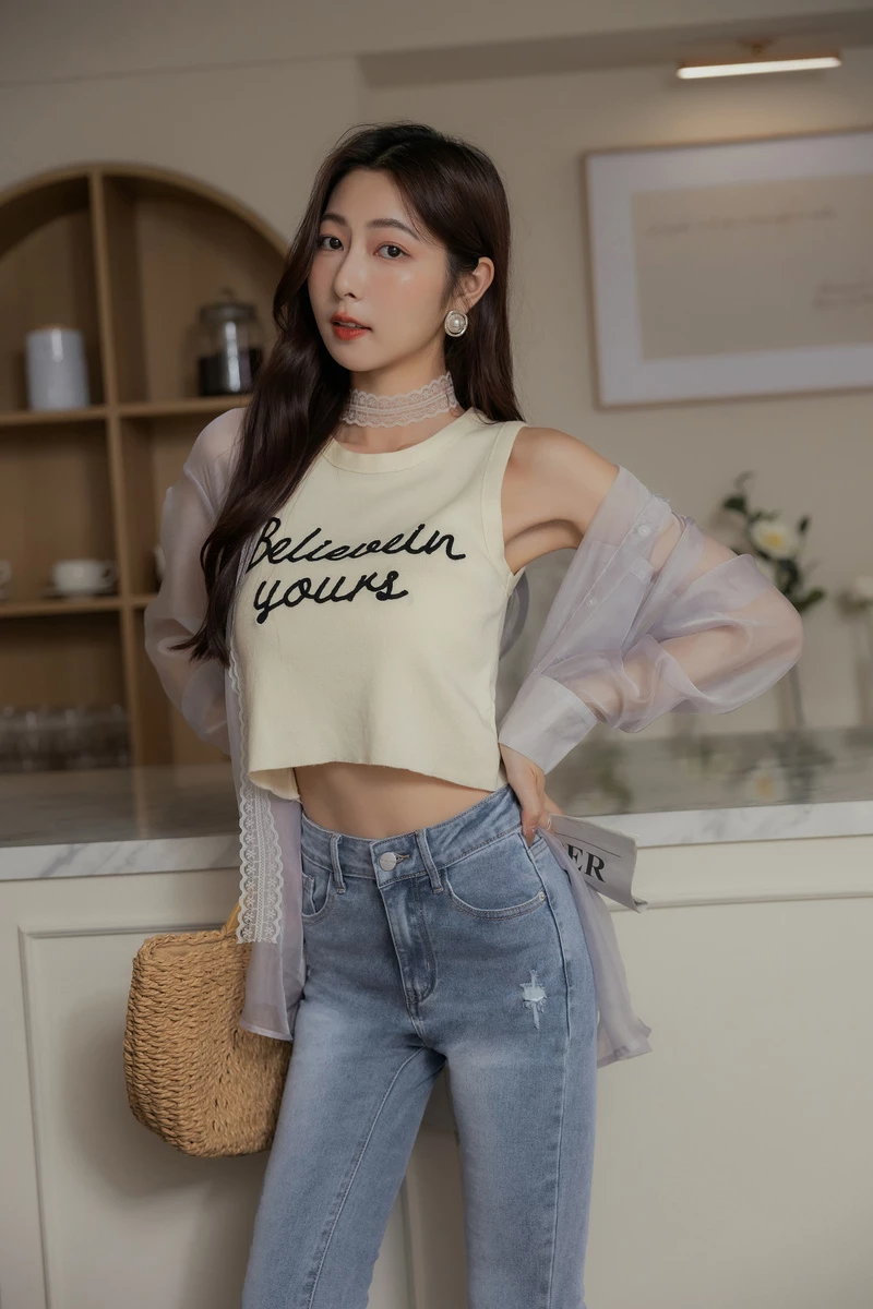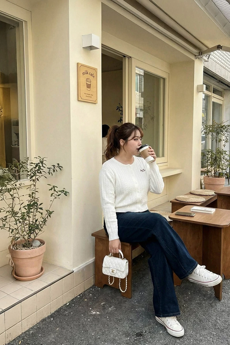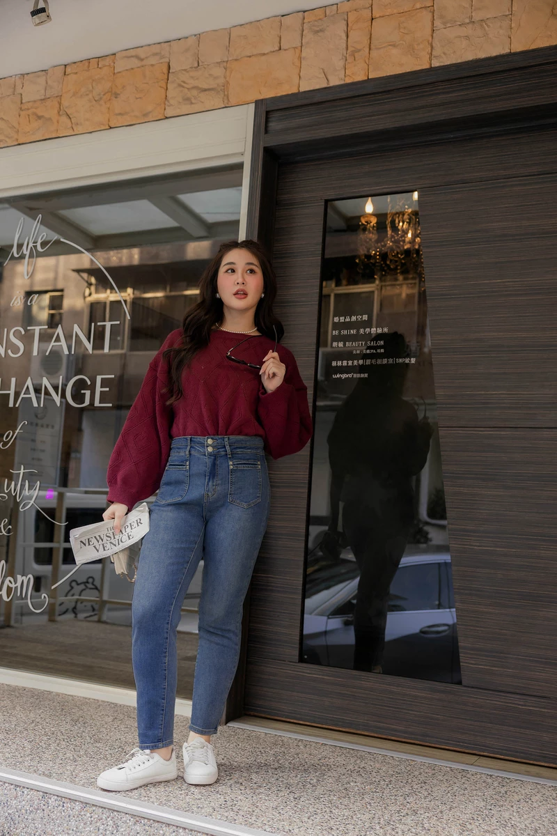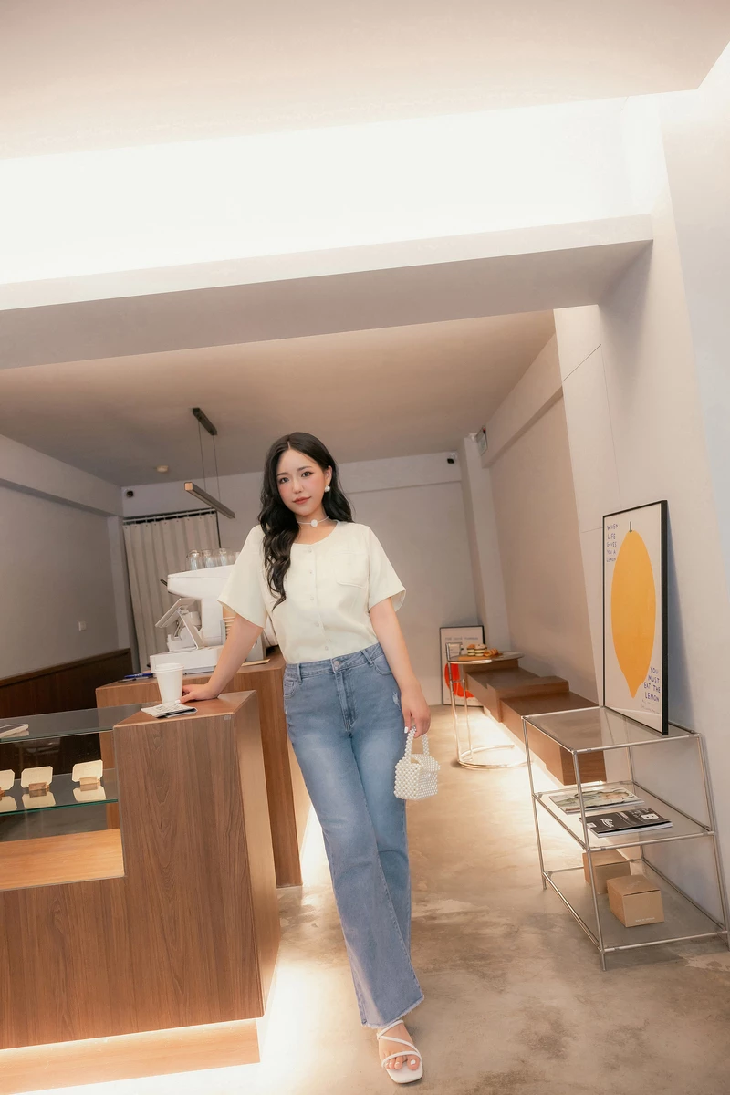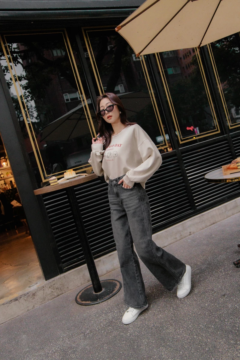-5KG芝麻奶昔彎刀感牛仔寬褲