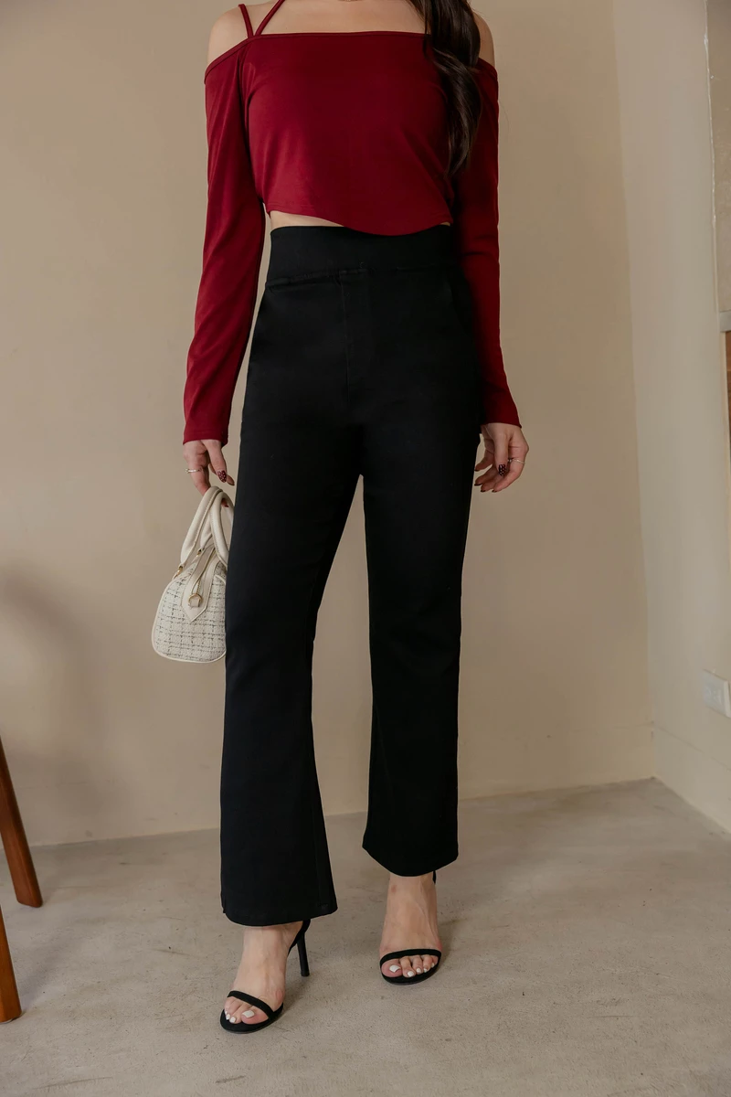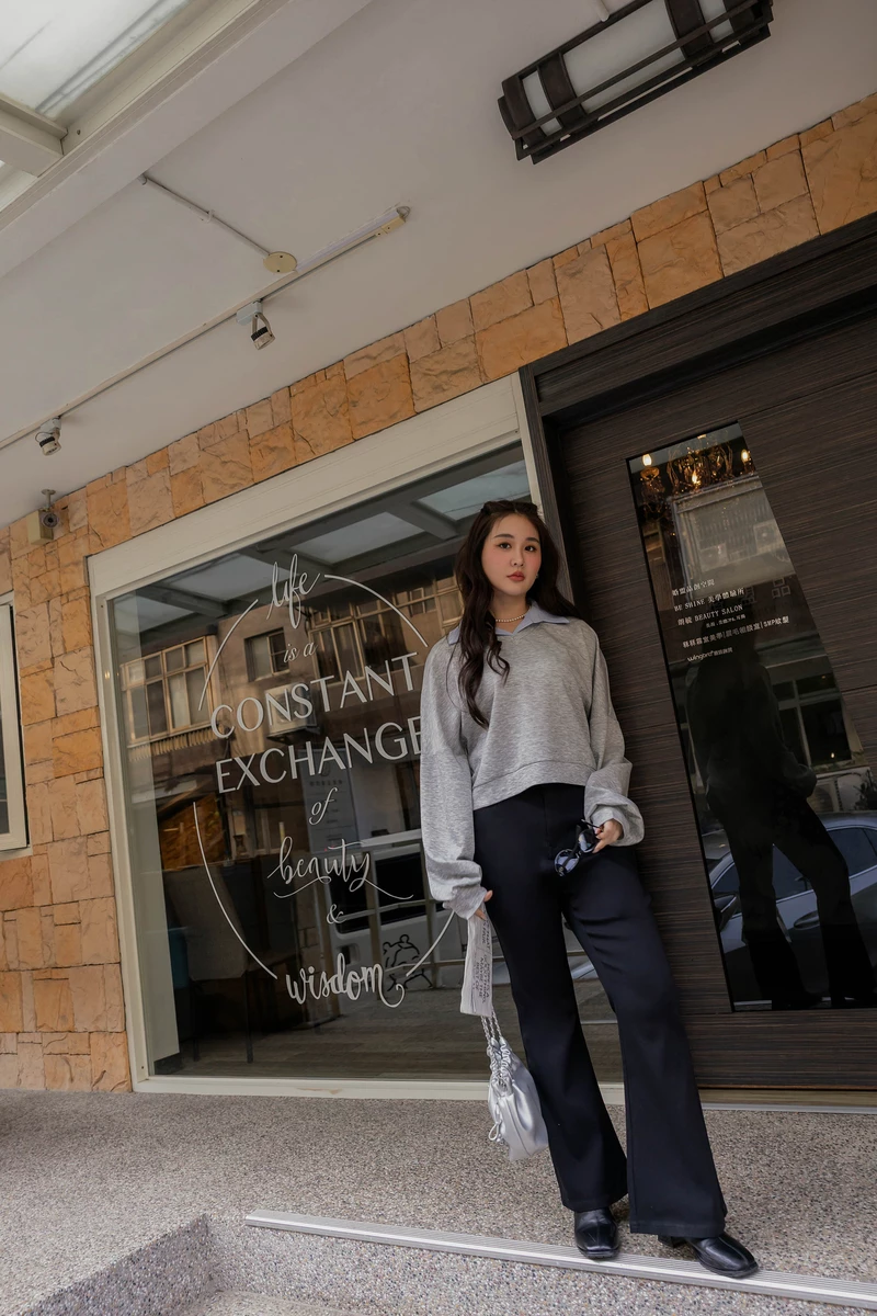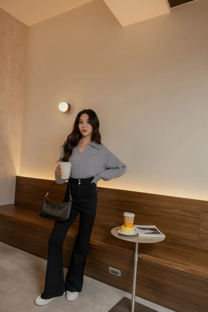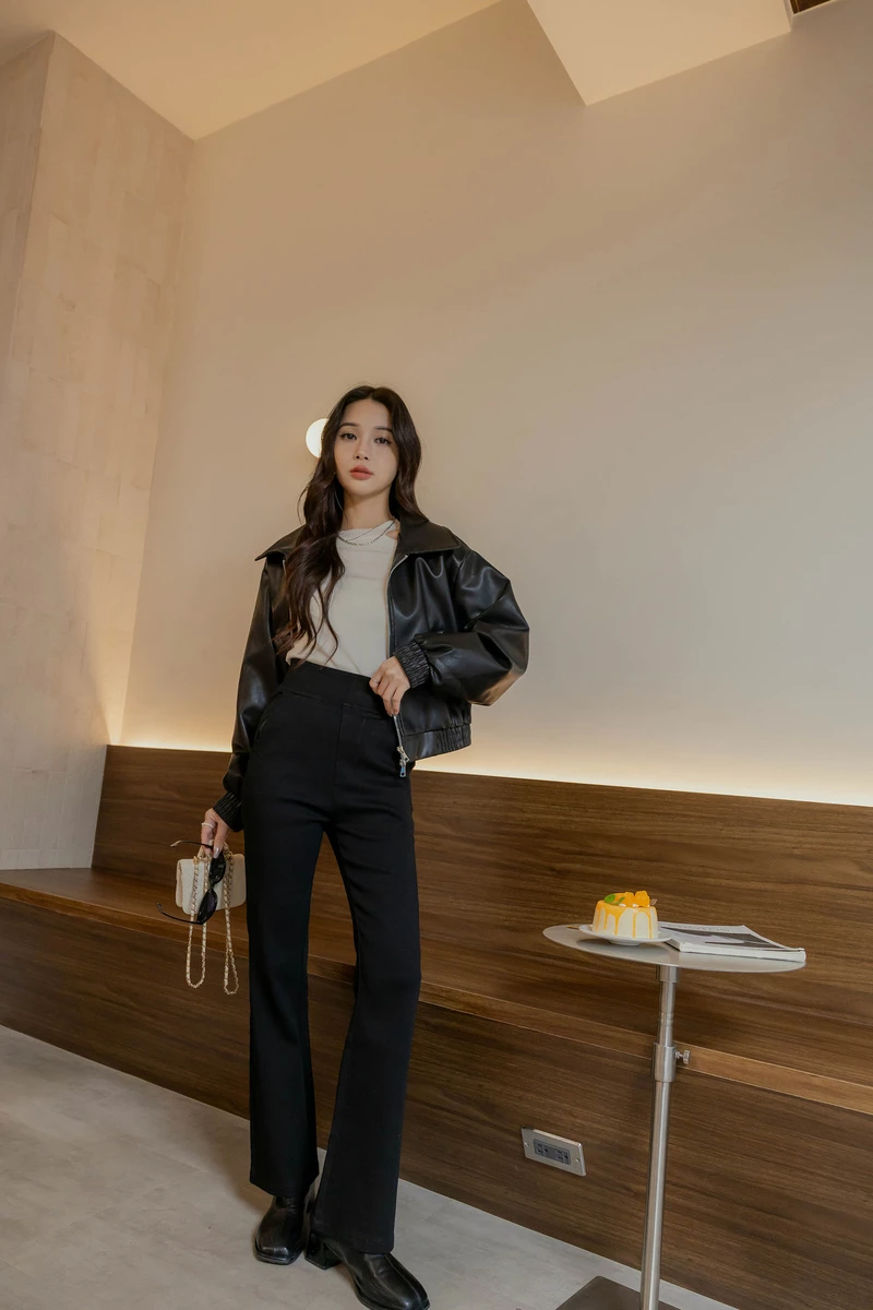-5KG內磨毛雙扣收腹小喇叭黑褲