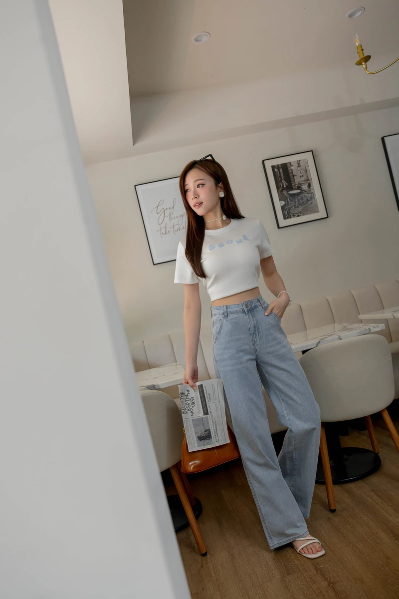 -5KG長腿系列-收腹雙腰耳牛仔寬褲
