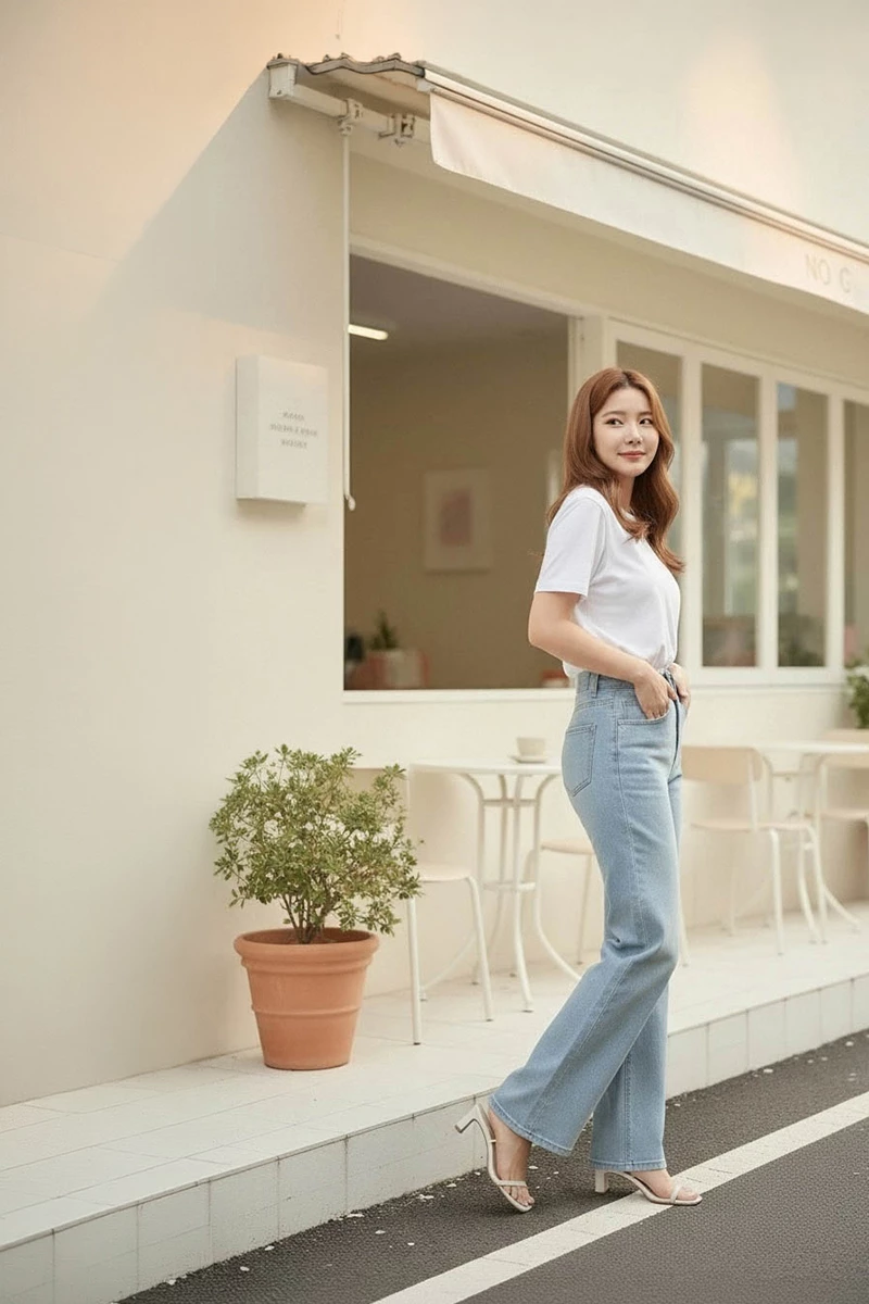 -5KG芝麻奶昔顯瘦車線牛仔褲