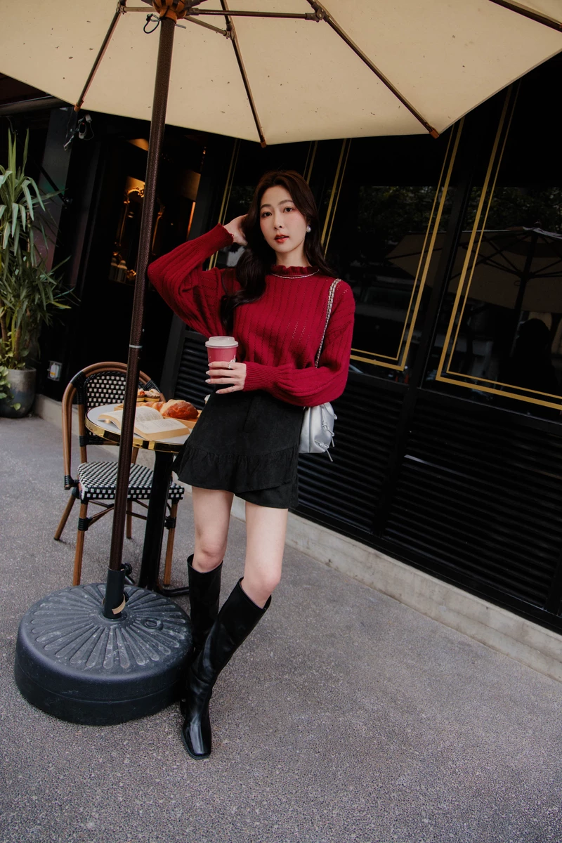 浪漫麂皮荷葉造型裙