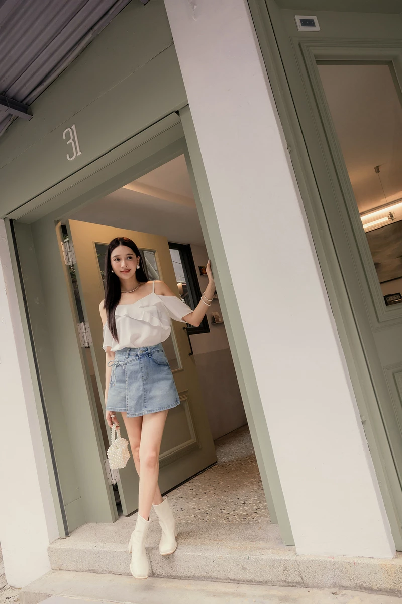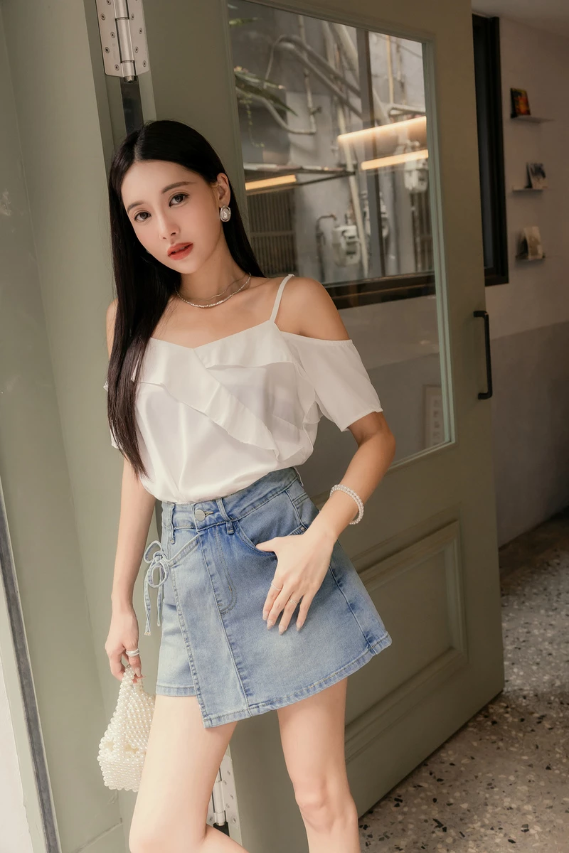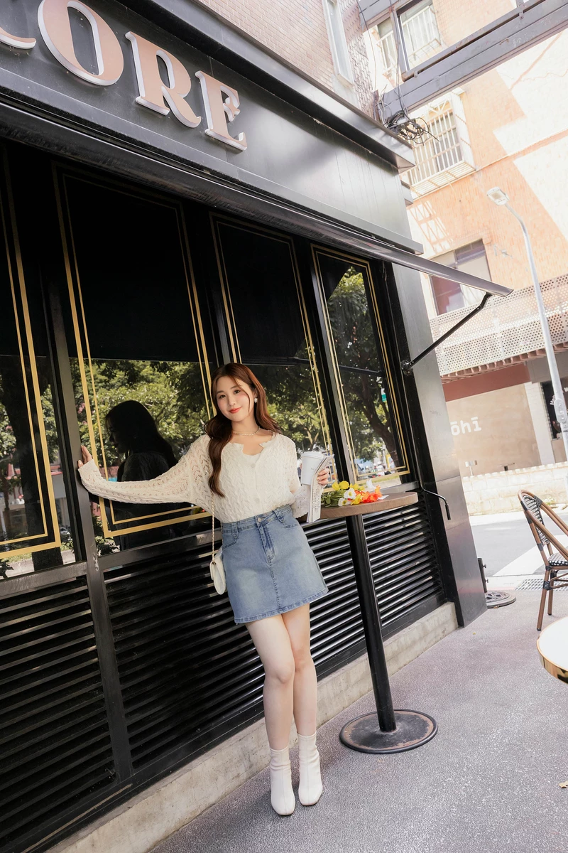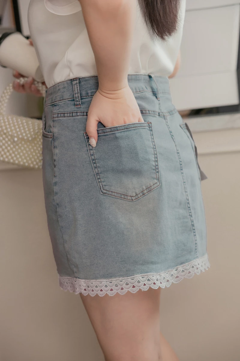-5KG甜甜蕾絲滾邊牛仔褲裙藍