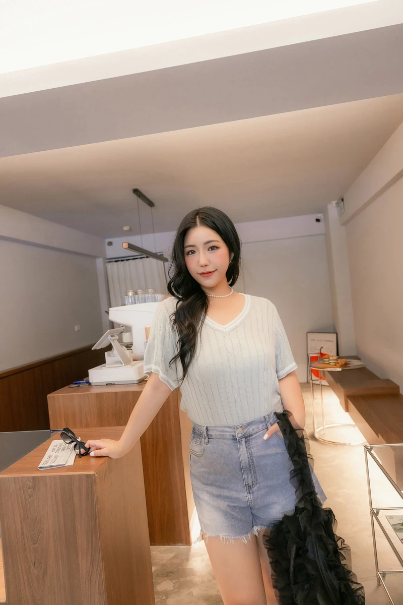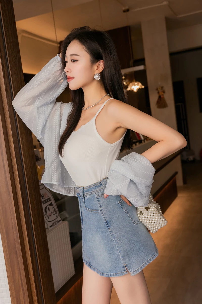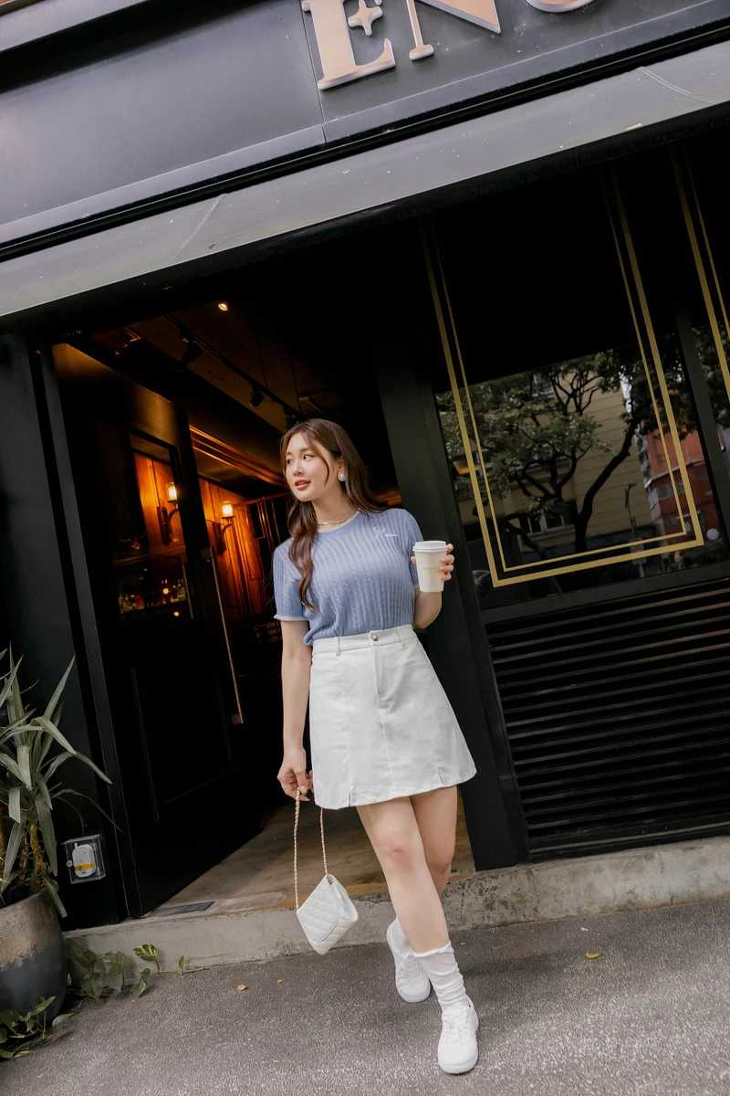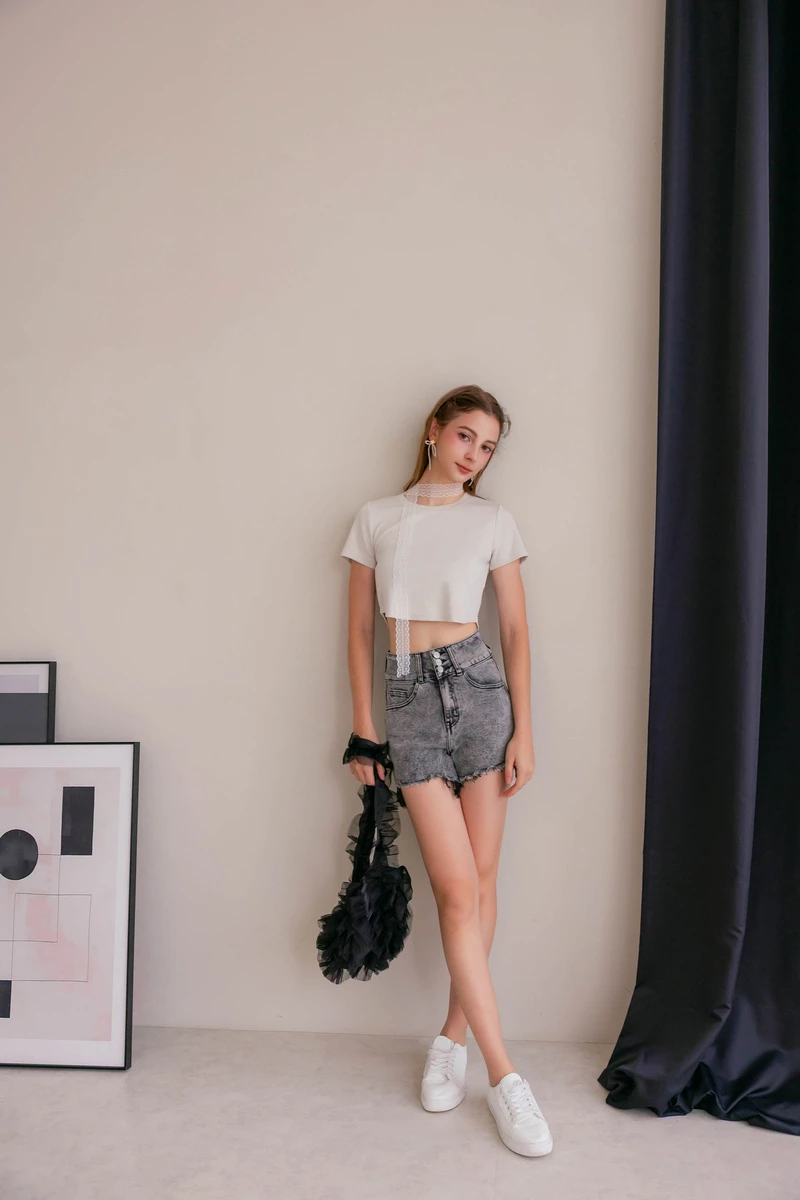 -5KG甜甜蕾絲滾邊牛仔褲裙藍