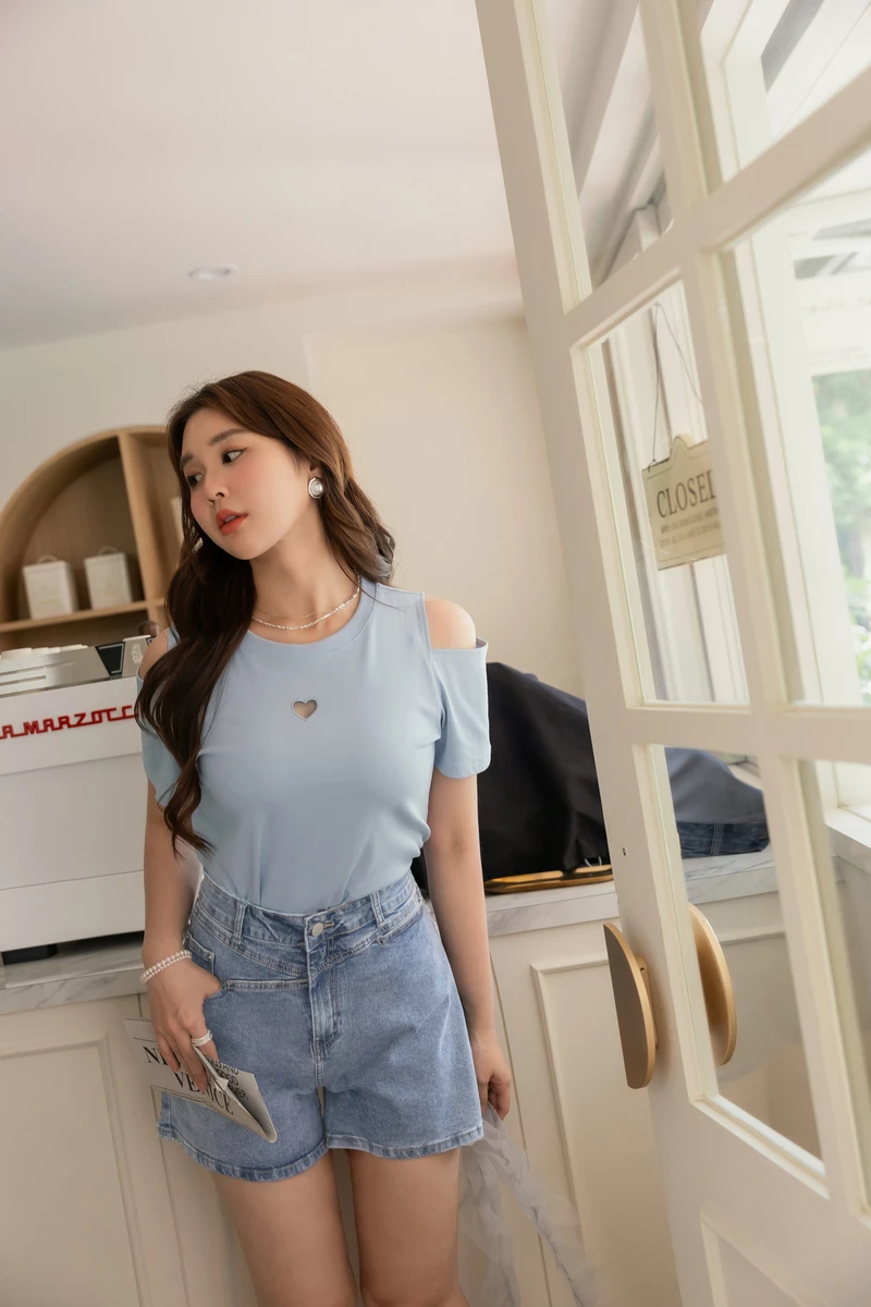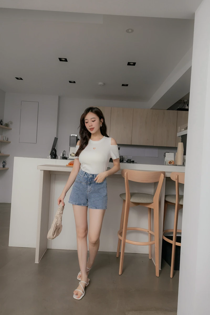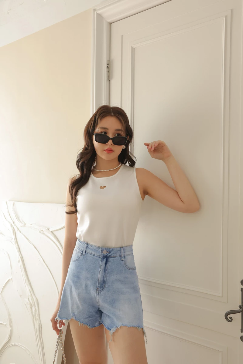 -5KG一眼命中愛心抽鬚牛仔褲裙