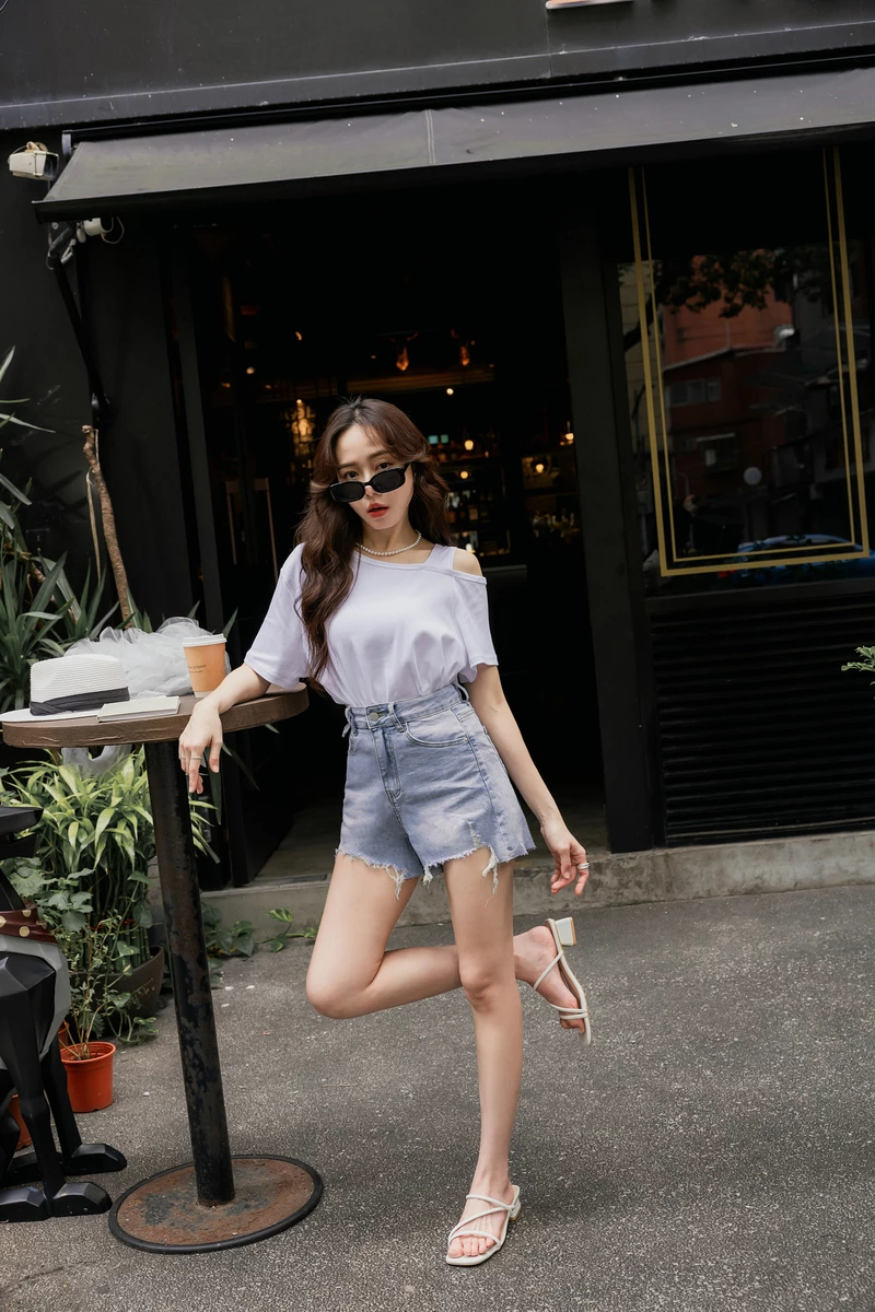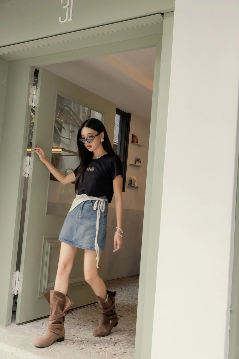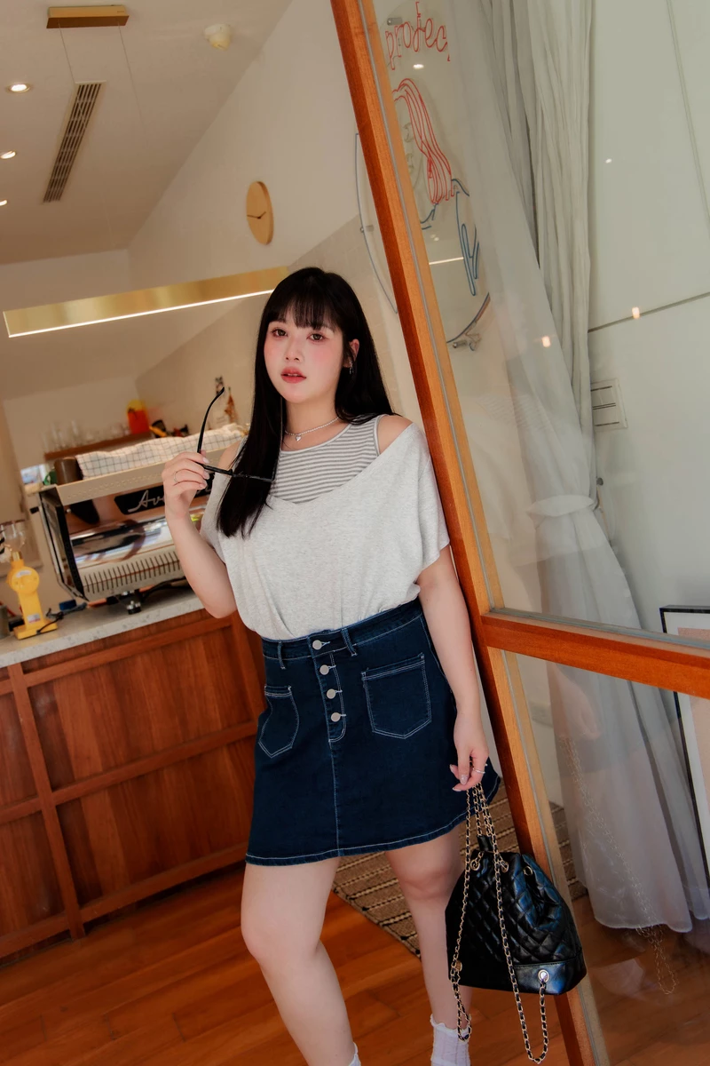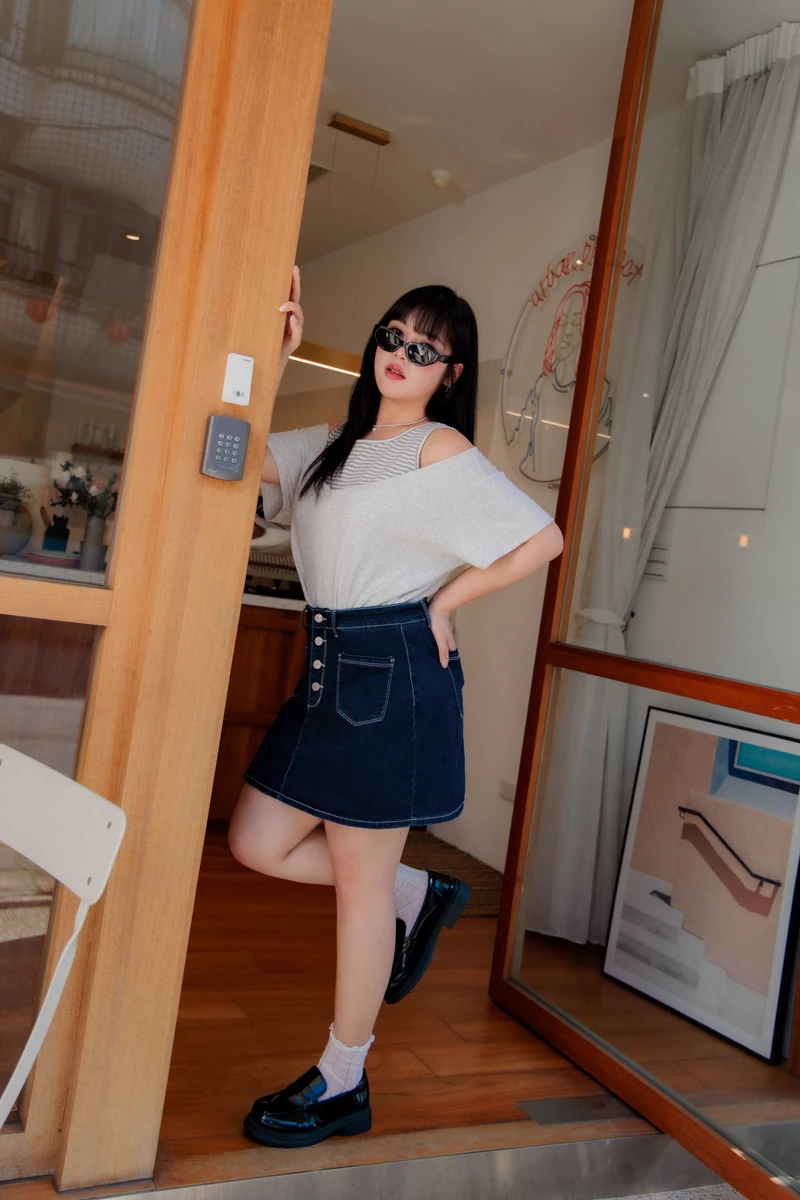 -5KG一眼命中愛心抽鬚牛仔褲裙