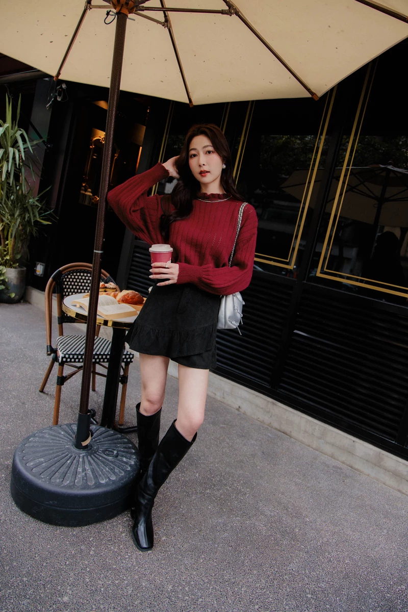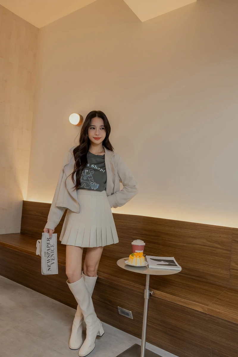 麂皮絨壓褶褲裙