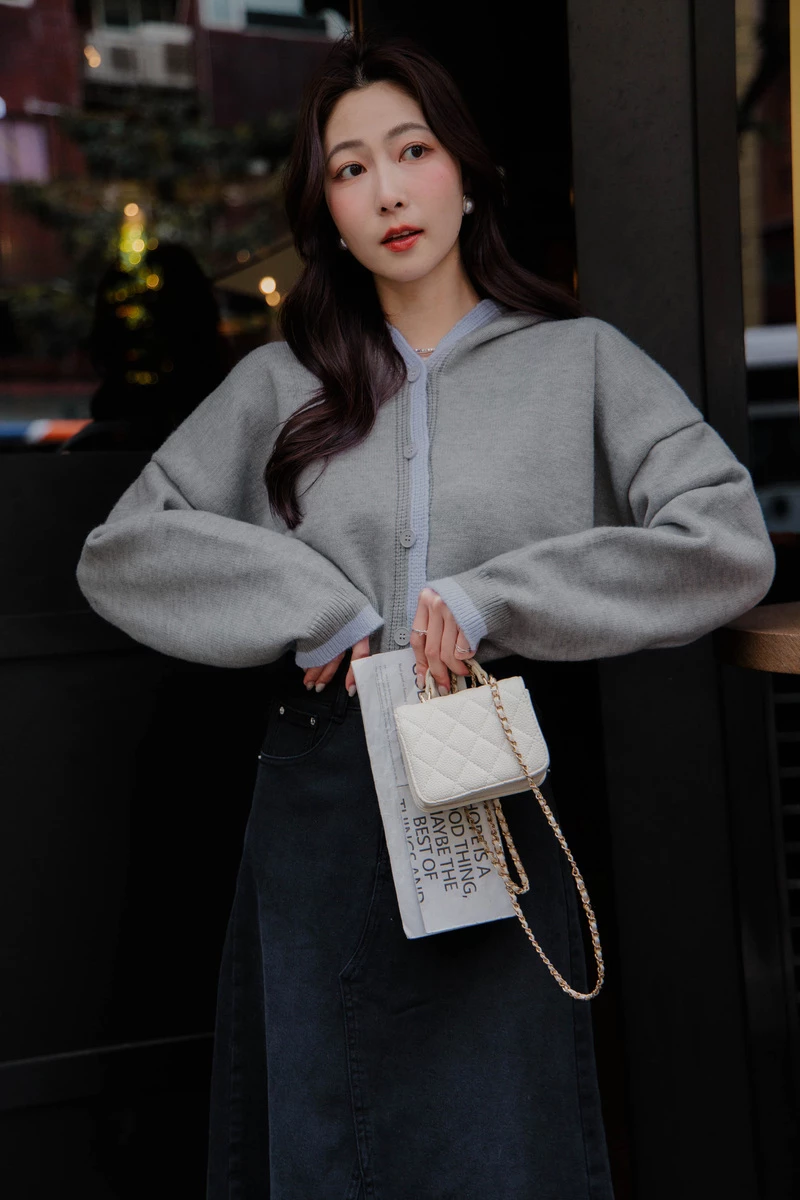 連帽配色厚磅毛衣