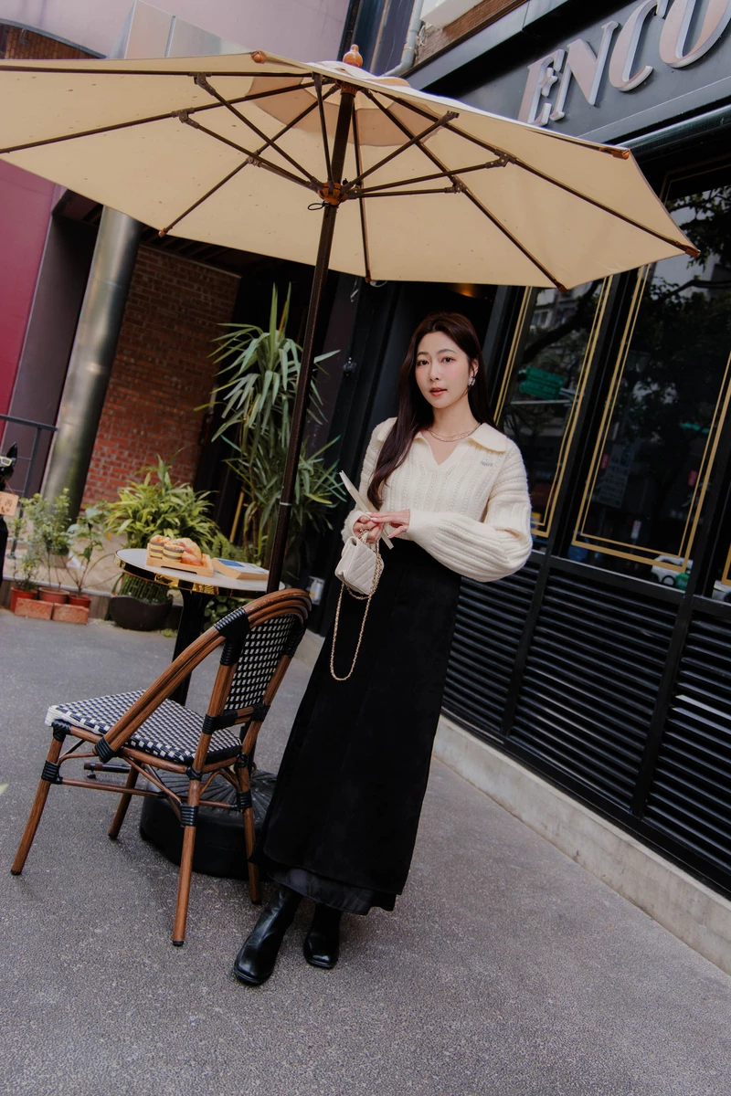 兩件式-襯衫背心挖船領毛衣