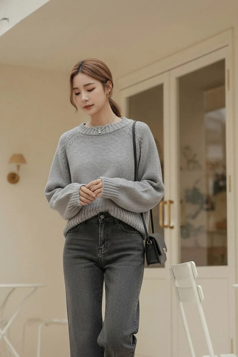 厚磅混色感短版針織毛衣