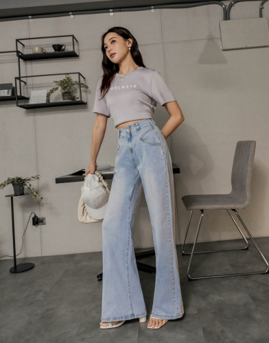 -5KG鬆緊腰抽繩褲腳工裝牛仔褲
