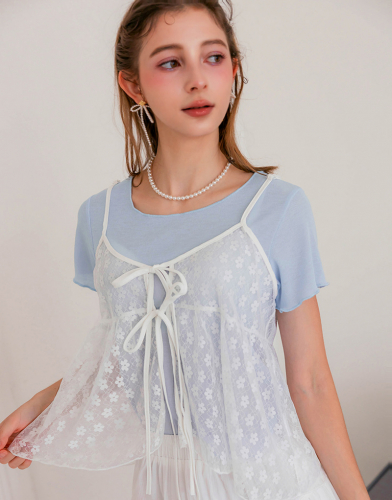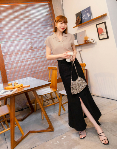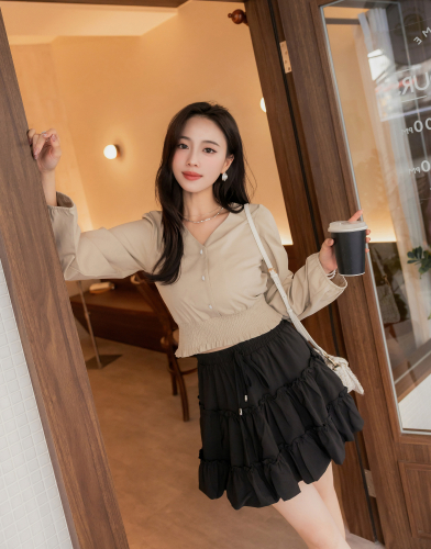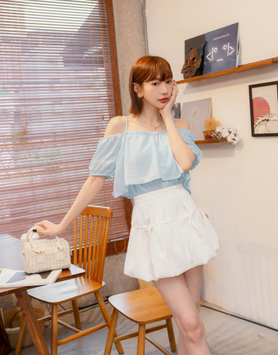 甜美鬆緊腰木耳滾邊蛋糕褲裙