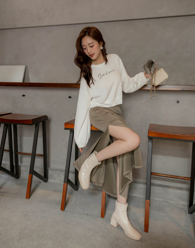 • 附皮帶-質感後拉鍊麂皮褲裙